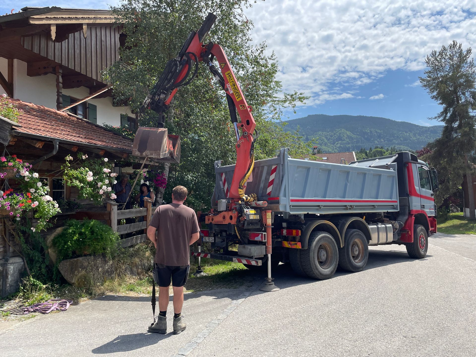 Aktuell haben wir zwei 4-Achser, einen 4-Achs-Abroller , einen 3-Achser, einen Anhänger, 3 Bagger verschiedener Größen, mehrere Radlader verschiedener Größen, sowie einen Tieflader zum Umsetzen unserer Baumaschinen. Zum anderen ist der 3-Achser zu einem Selbstlader umgebaut worden und kann auch so genutzt werden.